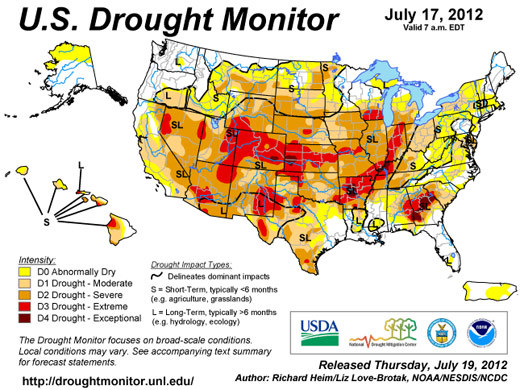 미국의 가뭄지역과 이로 인한 곡물가 상승은